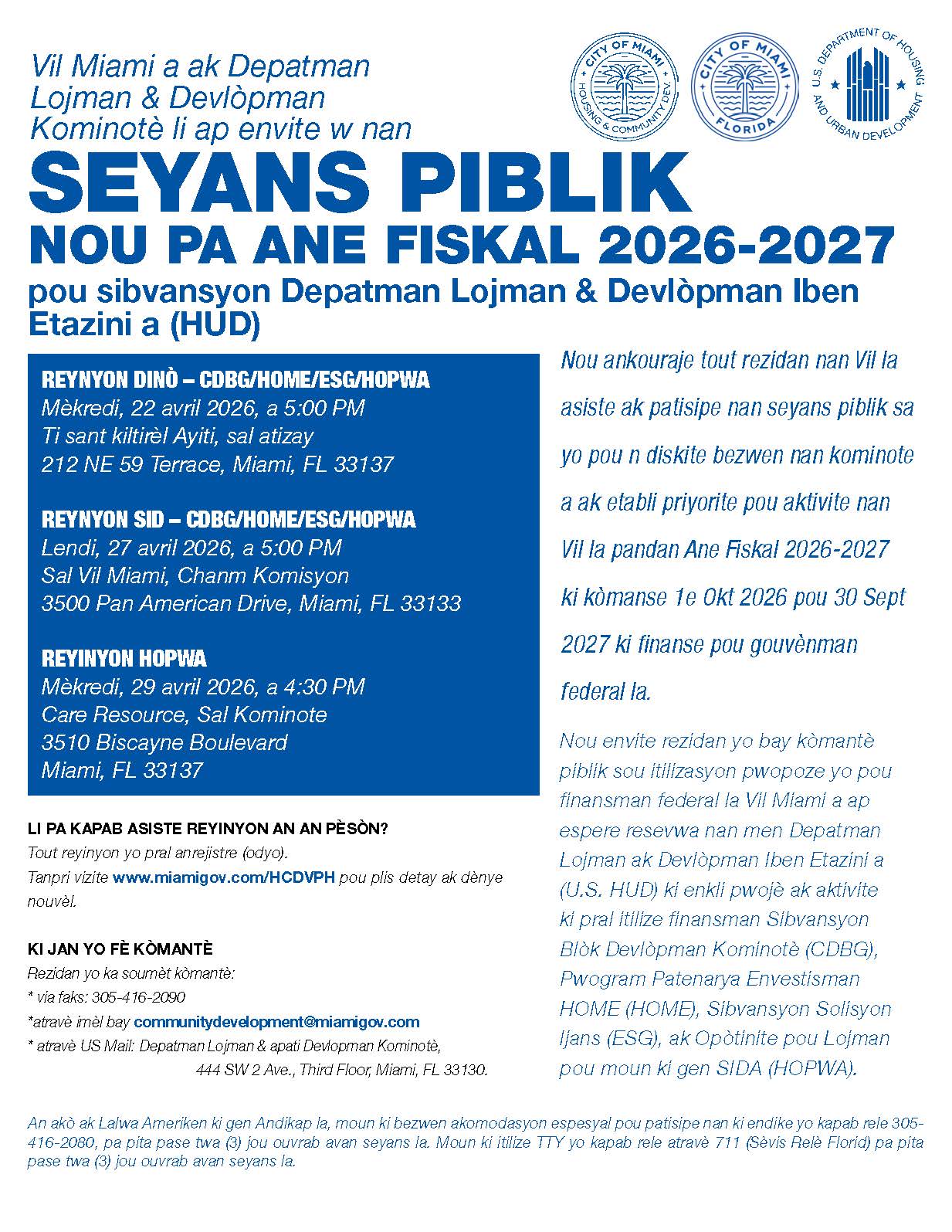 - Perform any other duties conferred to the Partnership by the Code of Miami-Dade County and/or required by funding sources for Partnership programs.